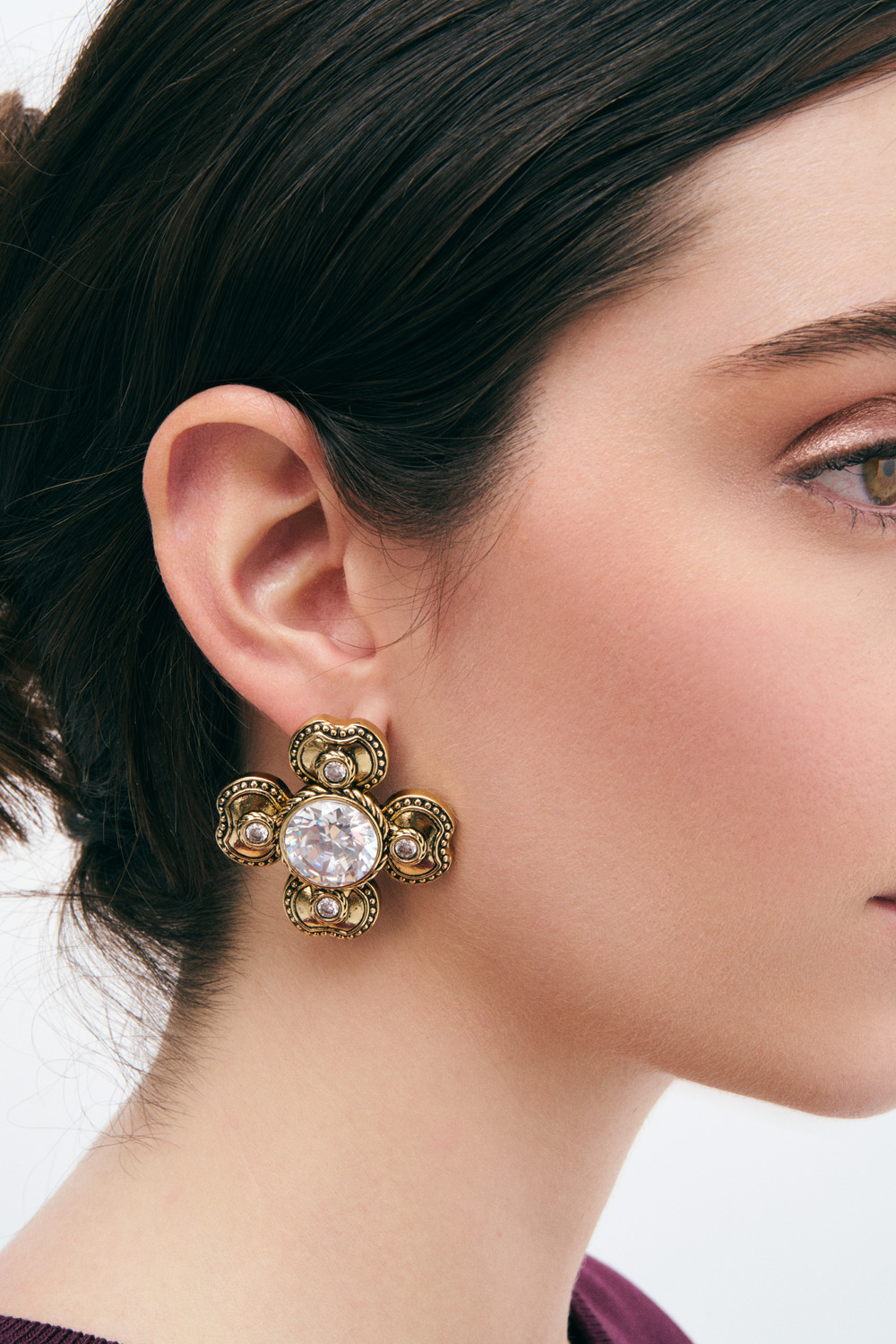These four-leaf clover-shaped earrings evoke a sense of luck and elegance. The large crystal stones reflect light, creating a radiant sparkle, while their design offers a touch of subtle sophistication and positive energy, symbolizing inner strength and clarity.